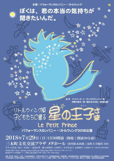 瀬戸内海に住む小さな魚たちは、身を守りながらも楽しく暮らしています。じっと我慢していたが、若い魚たちは、人間に対する苛立ちから、ふざけて渦を起こし漁船を転覆させてしまう。そこには黄色いカッパを着た小さな女の子が乗っていた。魚たちの思いを女の子にぶつける魚たちと女の子を守ろうとする魚たちの物語。ぜひ、会場にお越しください。