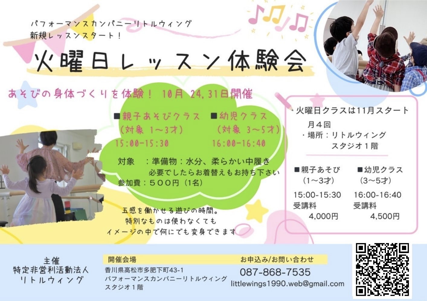 13:00~13:50 (月2回隔週土曜日)対象者:5歳から小学生