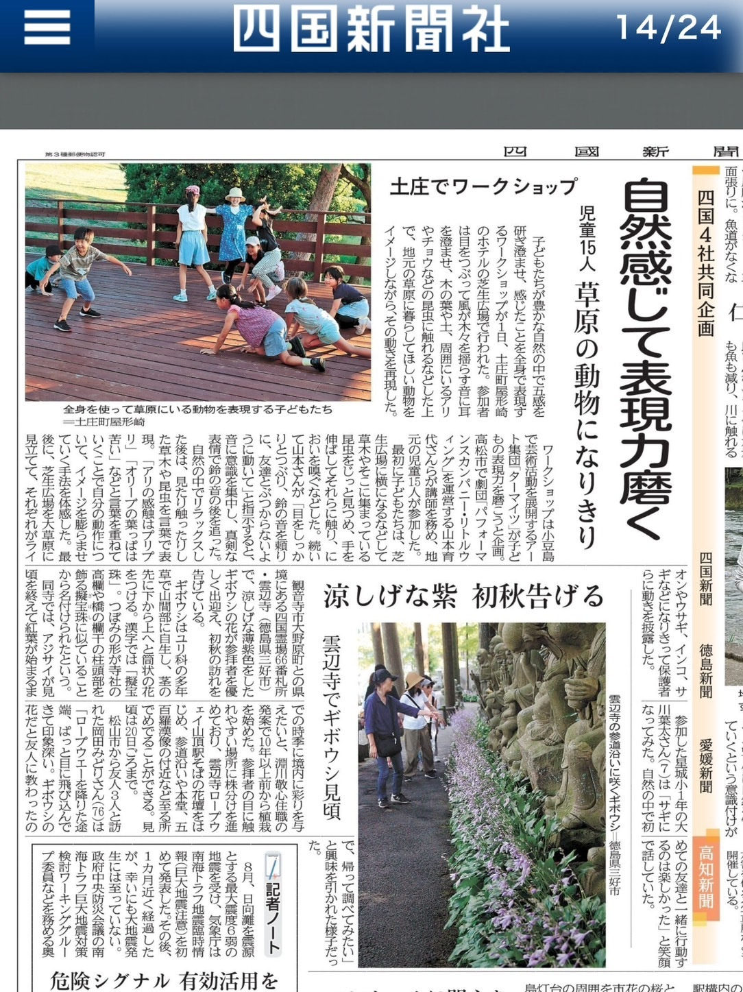 四国新聞9月5日号に掲載されました